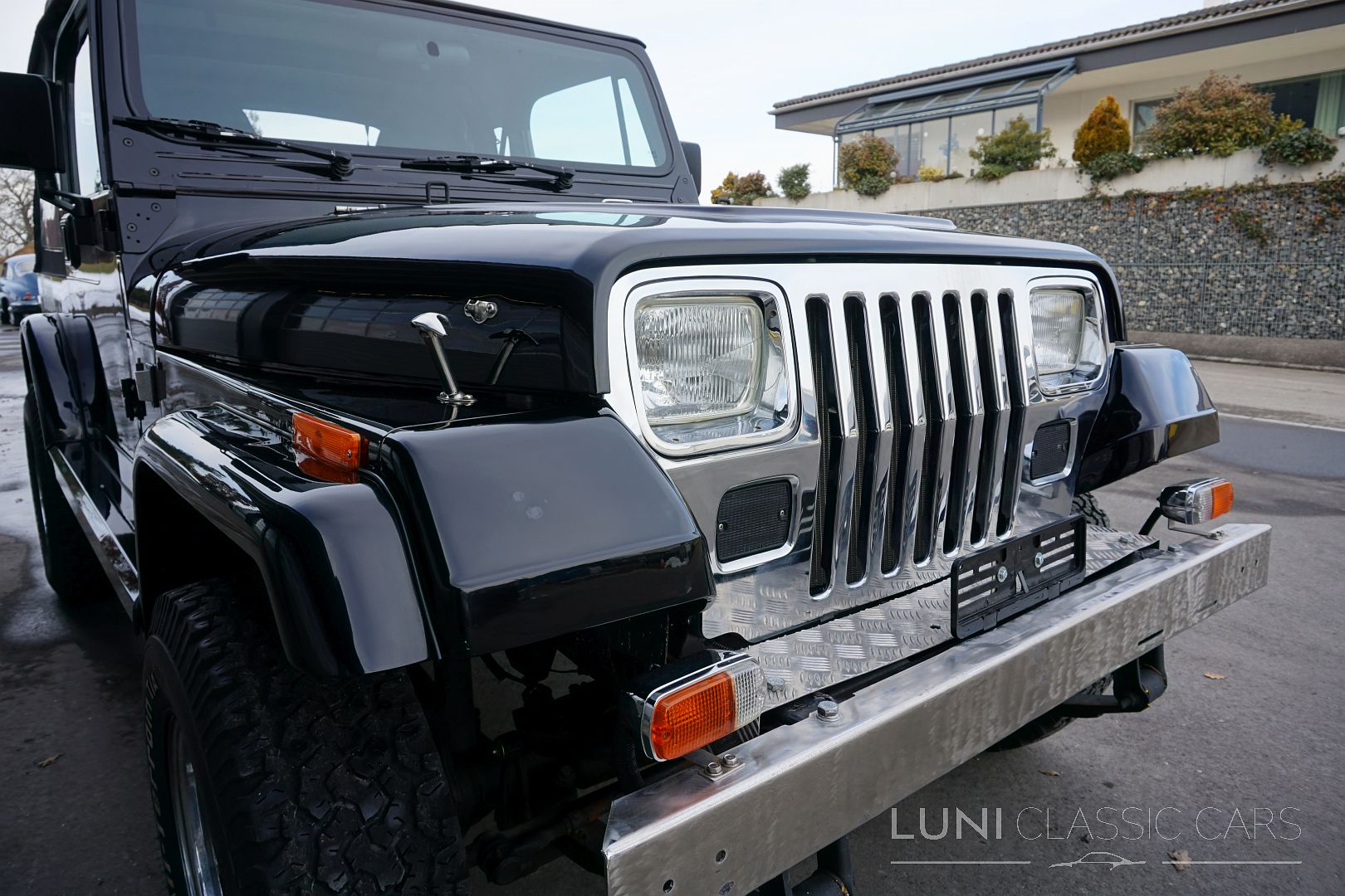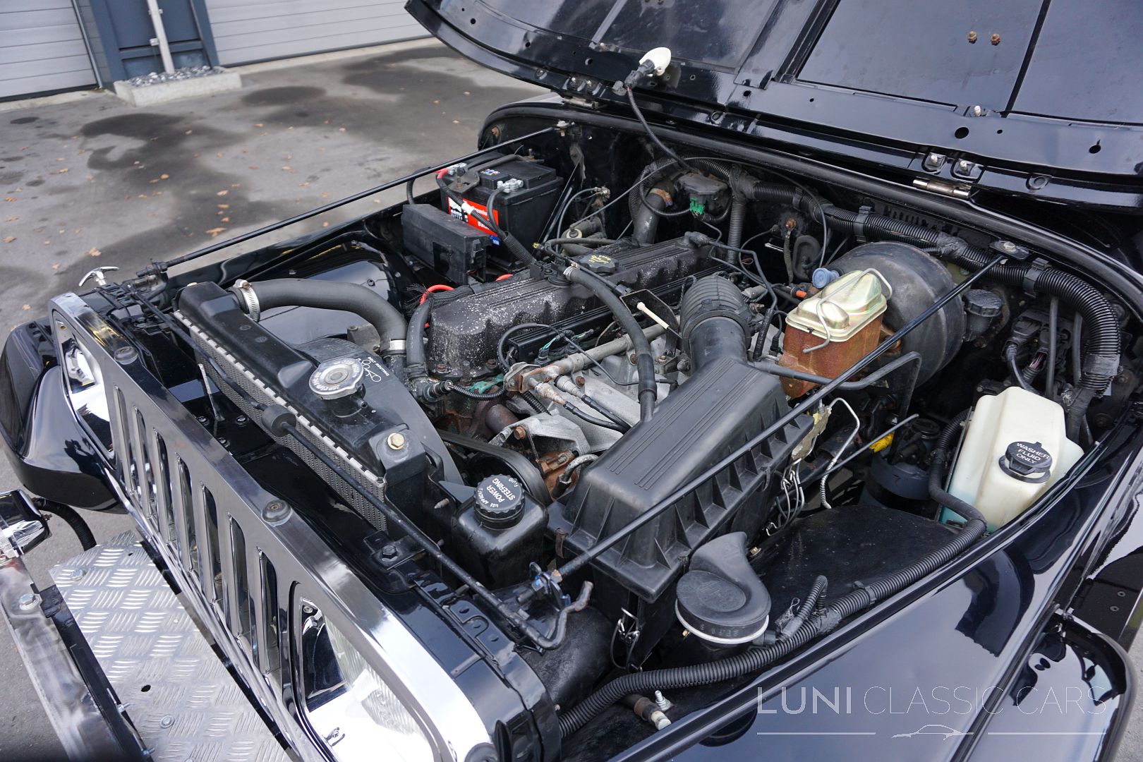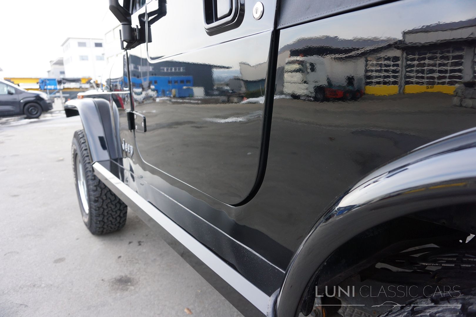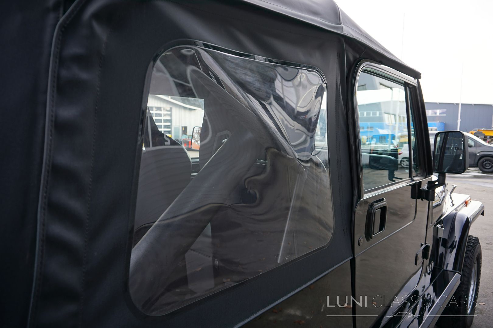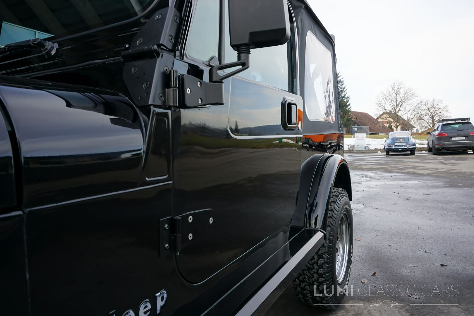 Styled simply in black and equipped with sports seats and a sports steering wheel, the Wrangler cuts a fine figure wherever it goes. Mechanically, the car is in good condition and the rust has also been kept largely in check. Of course, the Jeep does have a few scars after decades of use and the corresponding mileage. Although the paintwork is beautiful, the car has some hail damage that has not been repaired.