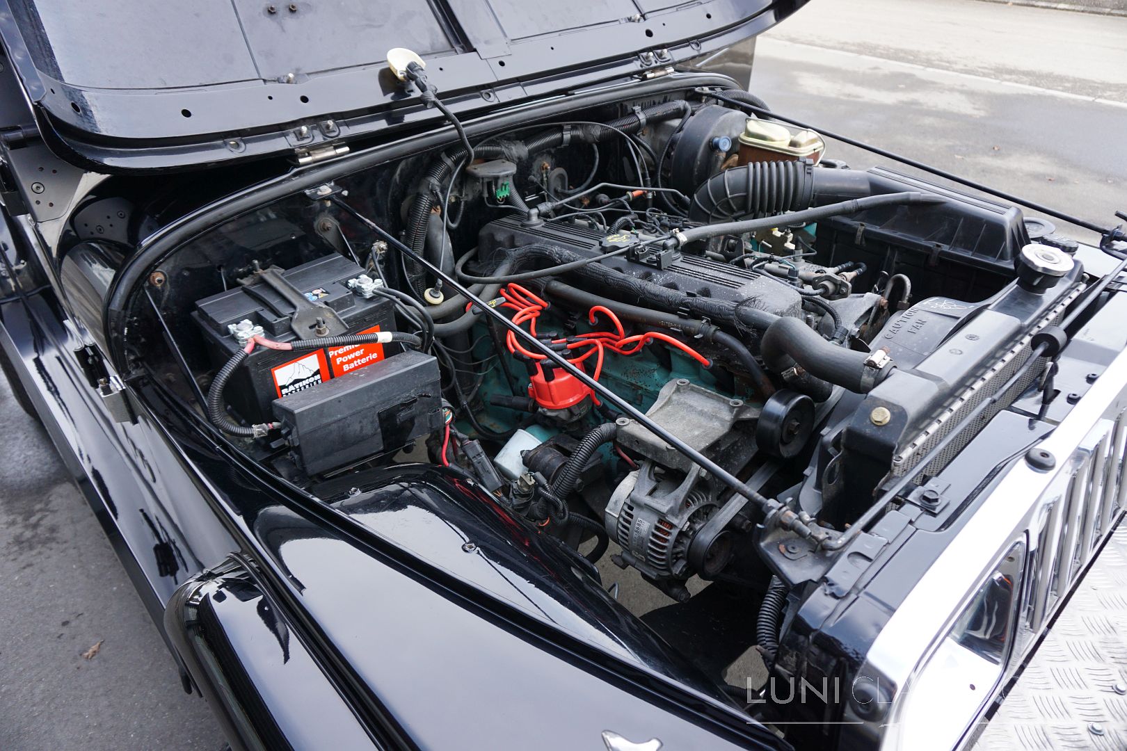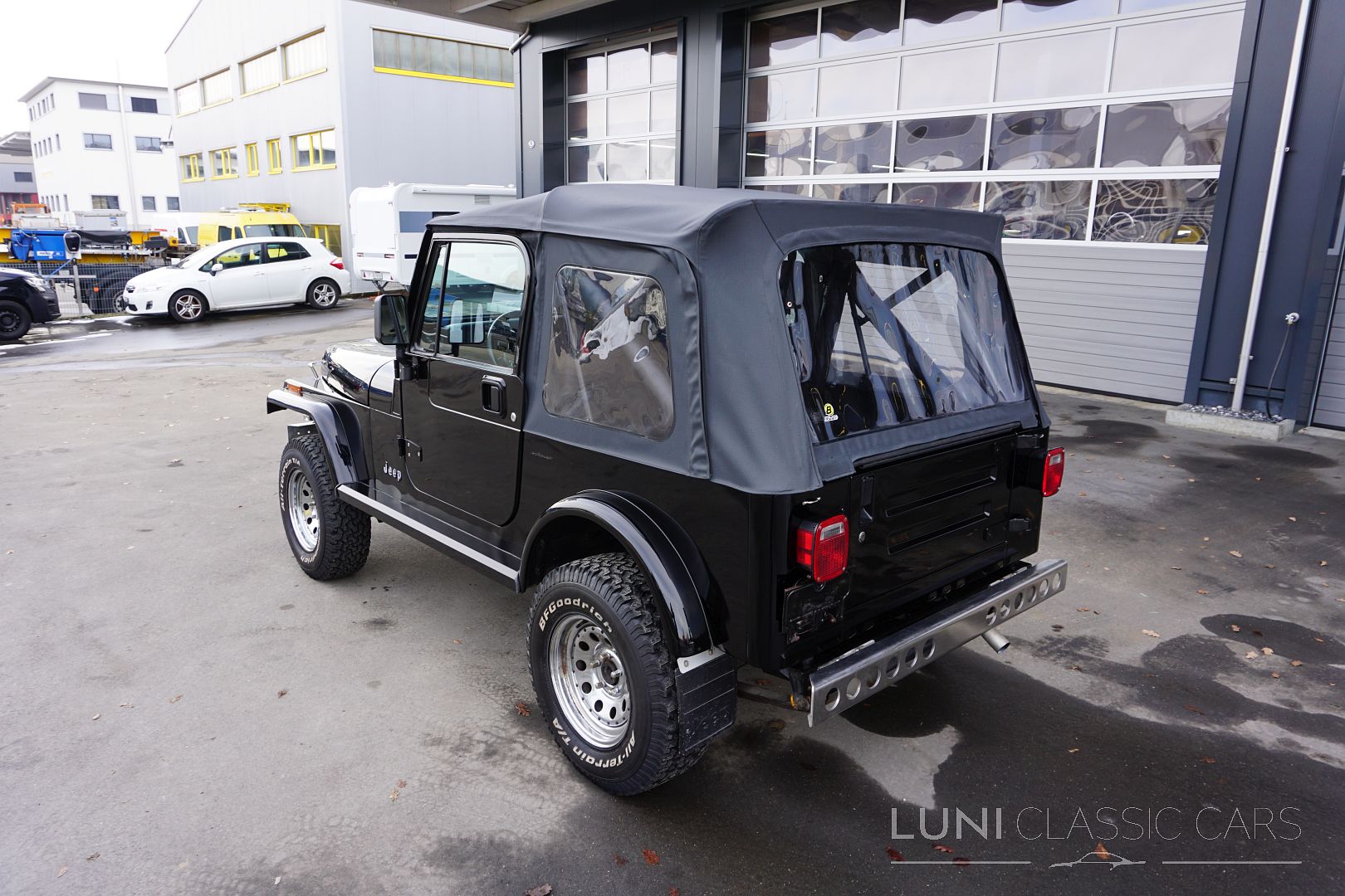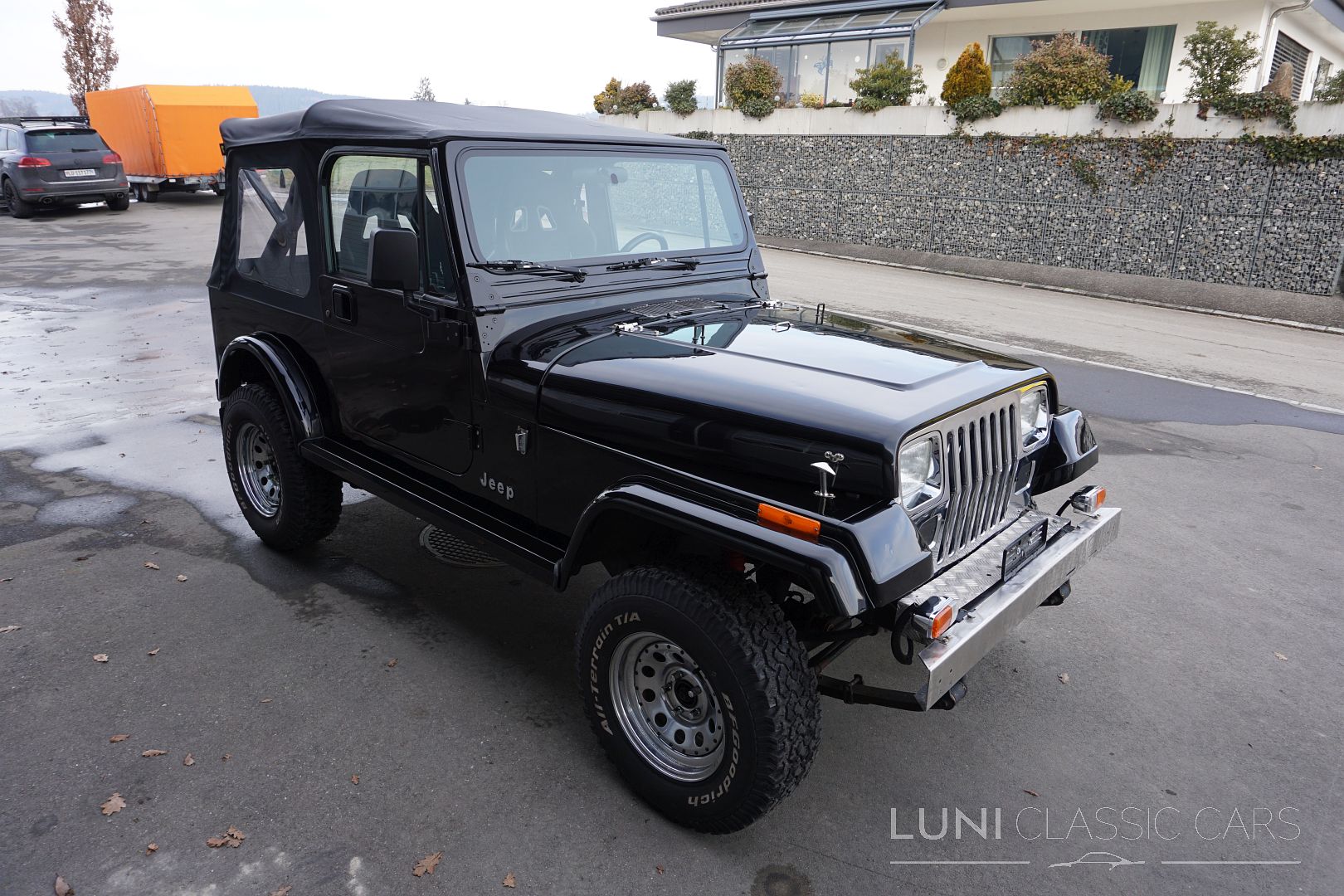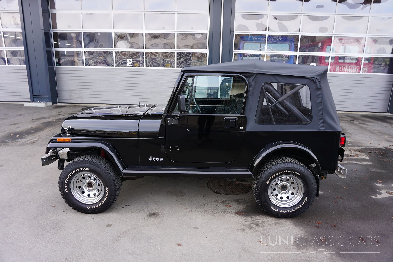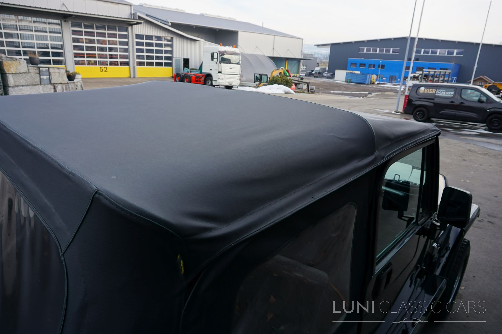 Styled simply in black and equipped with sports seats and a sports steering wheel, the Wrangler cuts a fine figure wherever it goes. Mechanically, the car is in good condition and the rust has also been kept largely in check. Of course, the Jeep does have a few scars after decades of use and the corresponding mileage. Although the paintwork is beautiful, the car has some hail damage that has not been repaired.