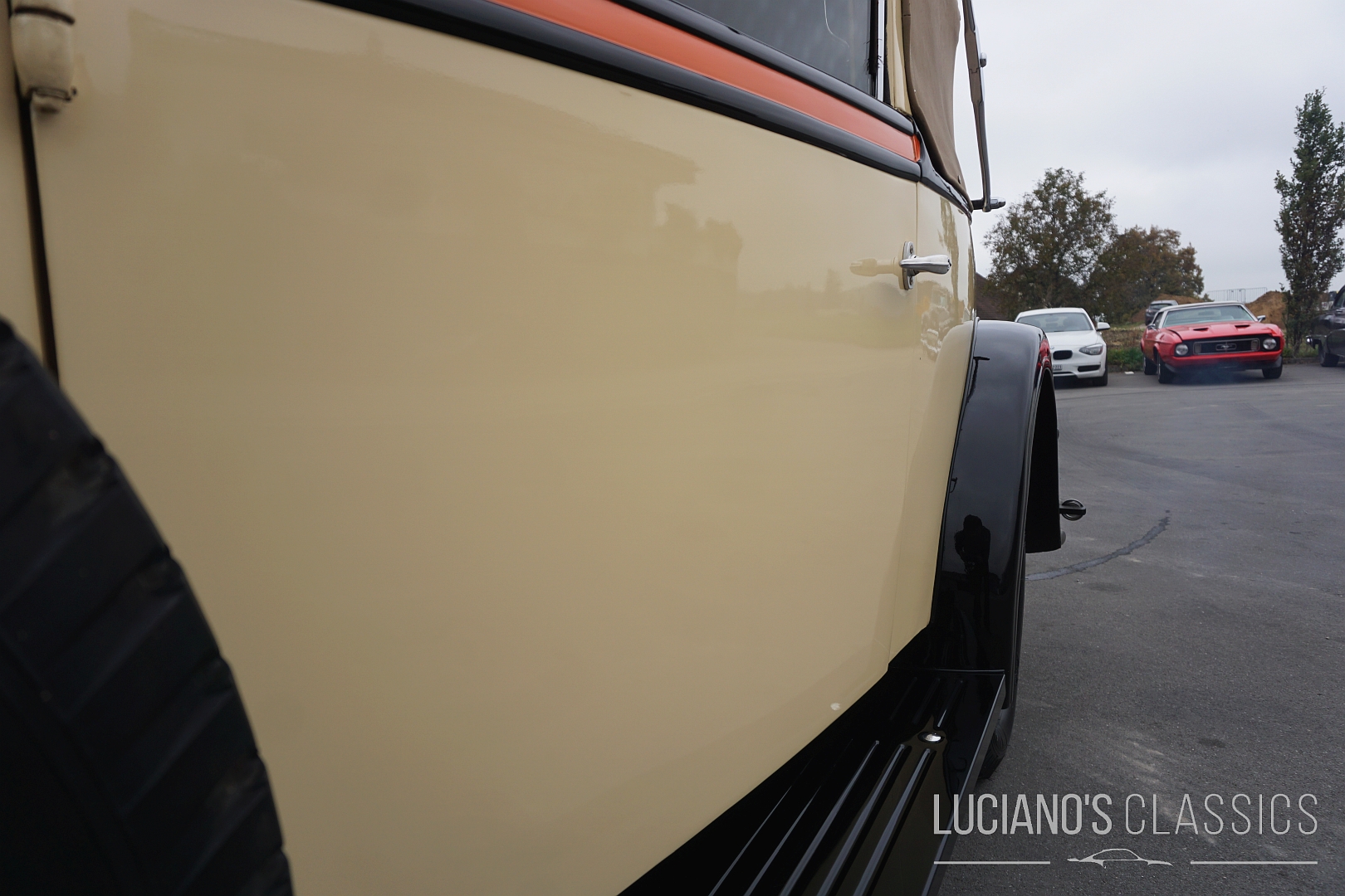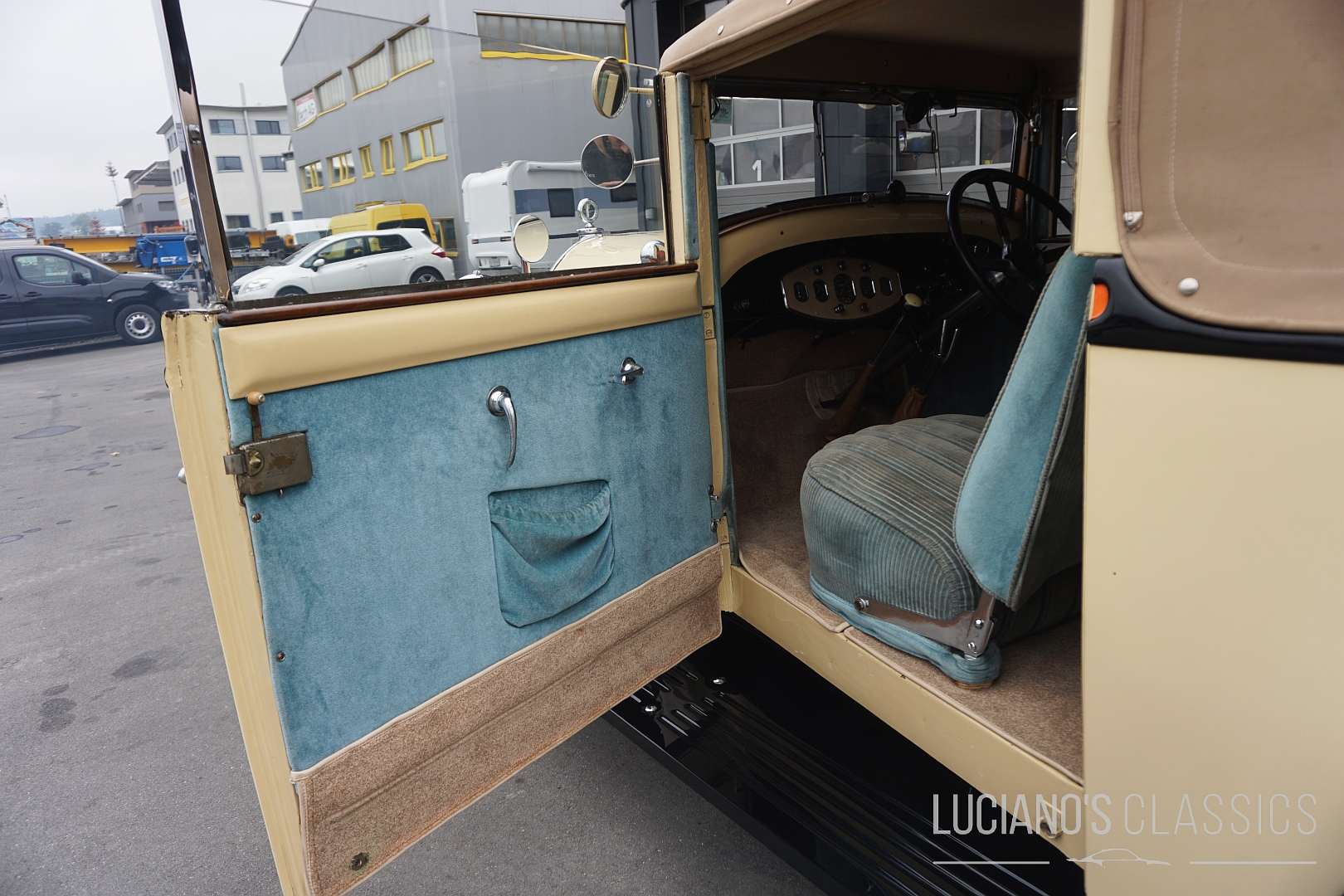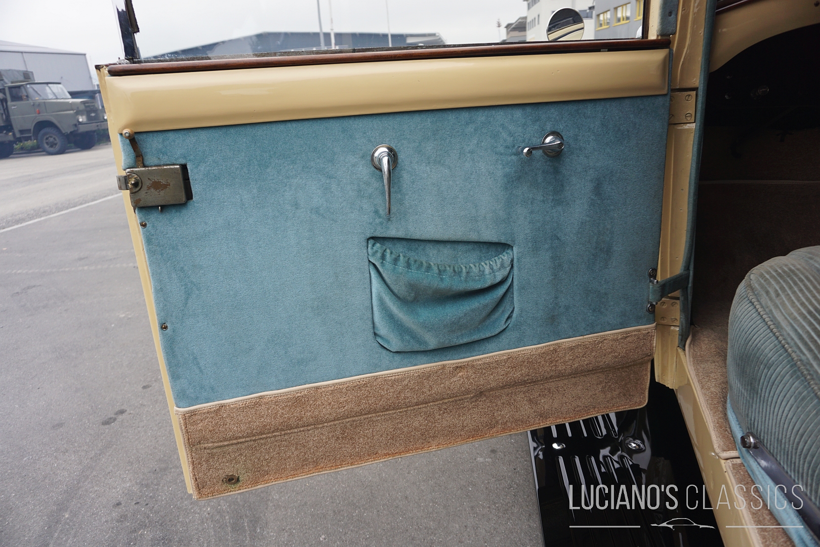 Das Interieur wurde mit grosser Sorgfalt restauriert oder erhalten: hochwertiges Holz, feiner Stoff, klassische Instrumente – alles dort, wo es hingehört, und mit der Atmosphäre eines englischen Gentlemen-Coupes. Die Karosserie wirkt adrett, mit typischen Vorkriegsproportionen, und das Auto besitzt eine würdige Patina, die seine Geschichte sichtbar macht.