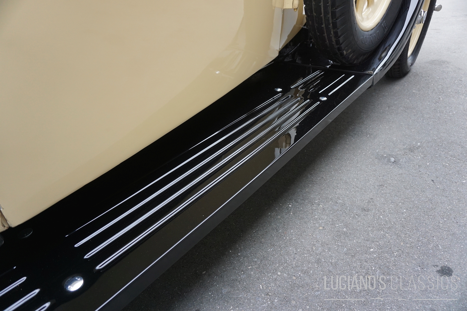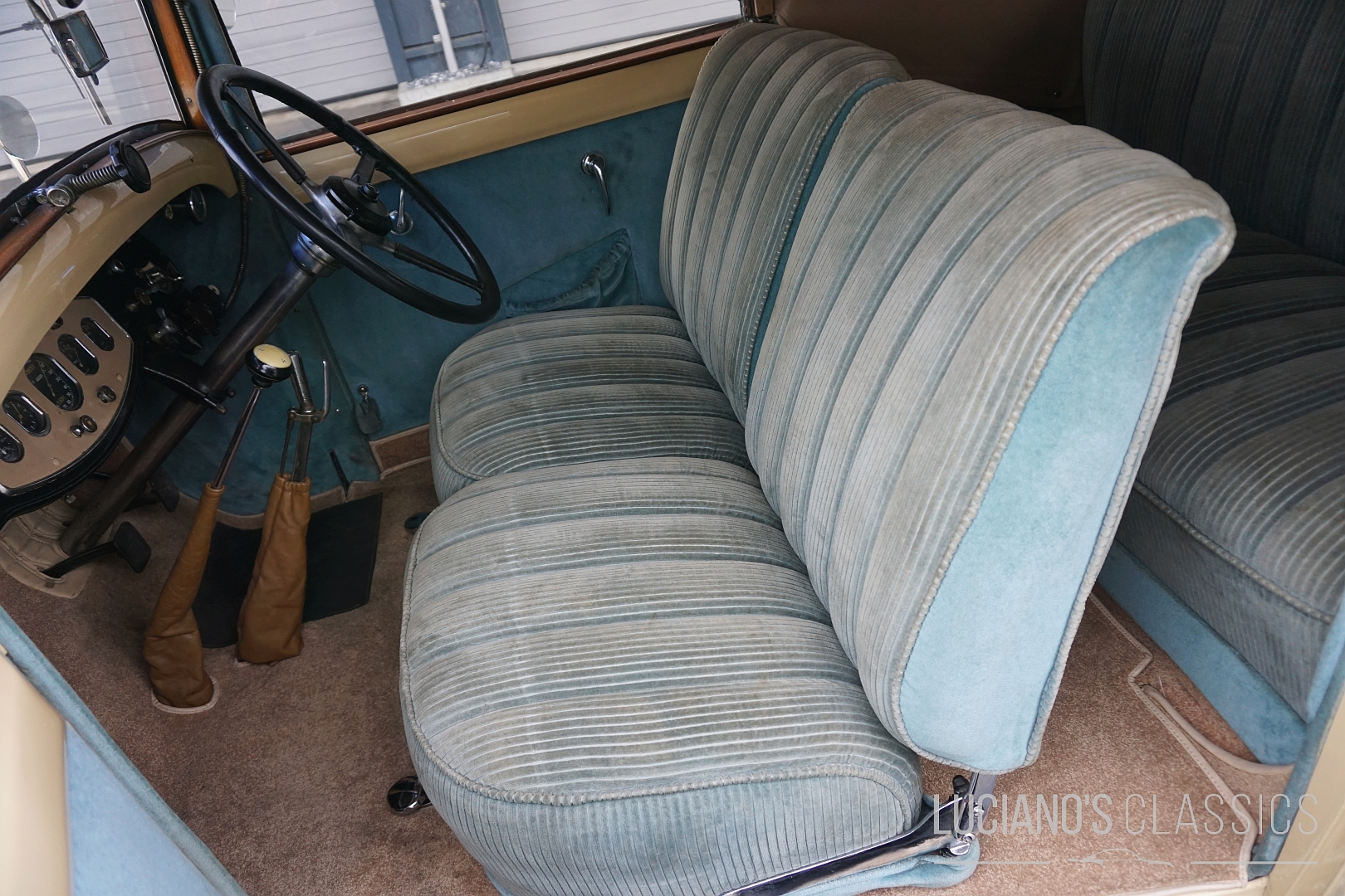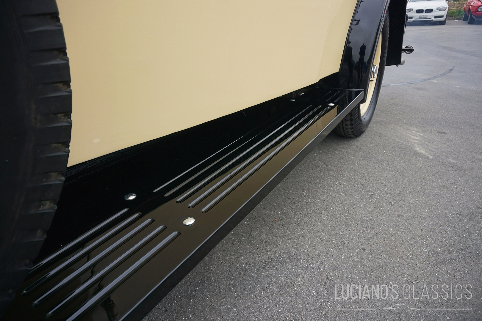 Das Interieur wurde mit grosser Sorgfalt restauriert oder erhalten: hochwertiges Holz, feiner Stoff, klassische Instrumente – alles dort, wo es hingehört, und mit der Atmosphäre eines englischen Gentlemen-Coupes. Die Karosserie wirkt adrett, mit typischen Vorkriegsproportionen, und das Auto besitzt eine würdige Patina, die seine Geschichte sichtbar macht.