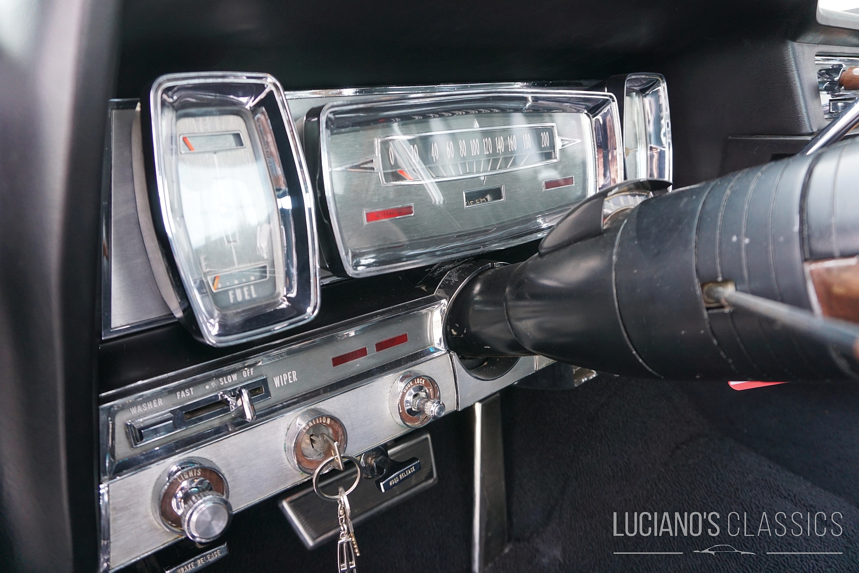 Wer in den Sechzigern in den Staaten etwas auf dem Kasten hatte, der hat sich den grenzenlosen Luxus eines Lincoln Continental gegönnt. Neben «normalem Luxus» wie bequemen, elektrisch verstellbaren Ledersitzen, Holzapplikationen, Servolenkung und Bremskraftverstärker, findet man in diesem Lincoln auch eine Zentralverriegelung und automatisch abblendendes Fernlicht. Gepaart mit zeitloser Lincoln-Optik, dem 320 PS starken V8, einer sehr schönen Lackierung und den schicken neuen Weisswandreifen bietet dieser Wagen alles, was das Herz begehrt. Ein eleganter Cruiser für die ganze Familie – und auch das Gepäck kommt im riesigen Kofferraum nicht zu kurz.