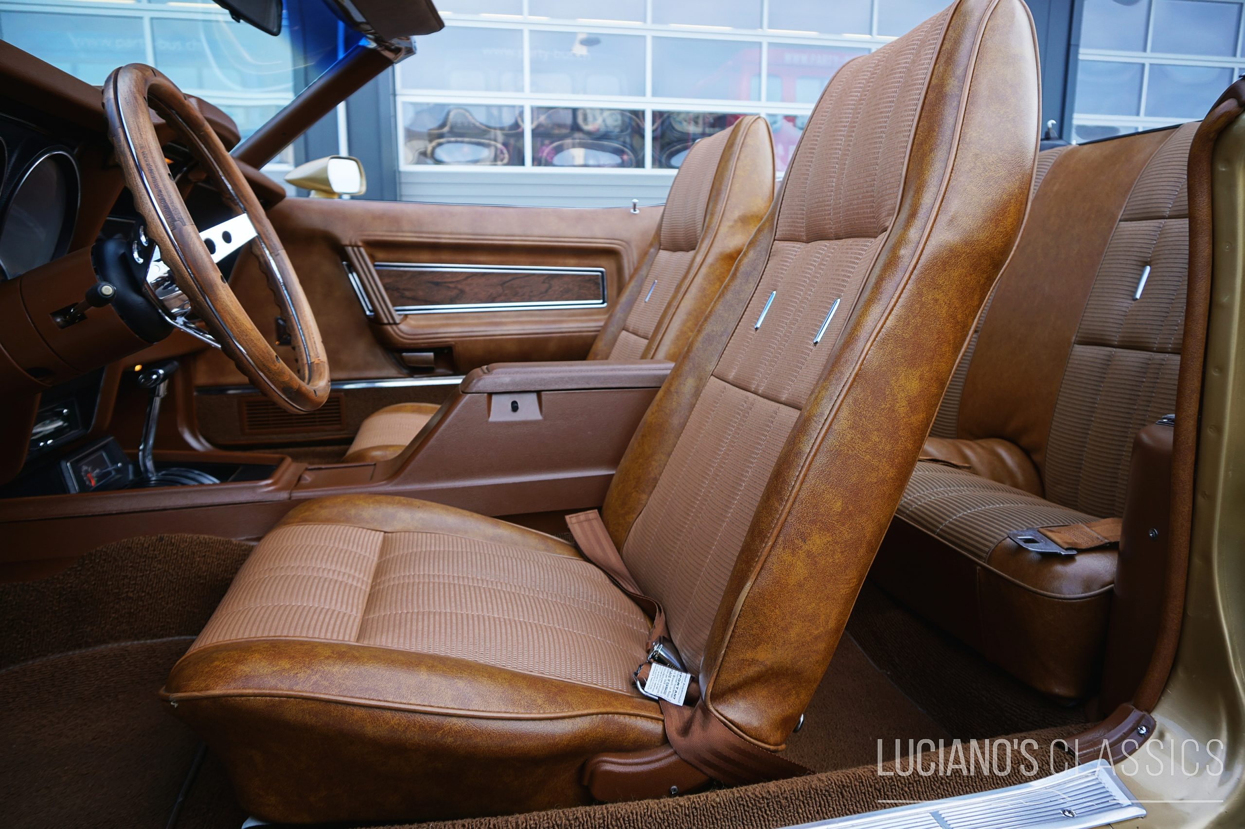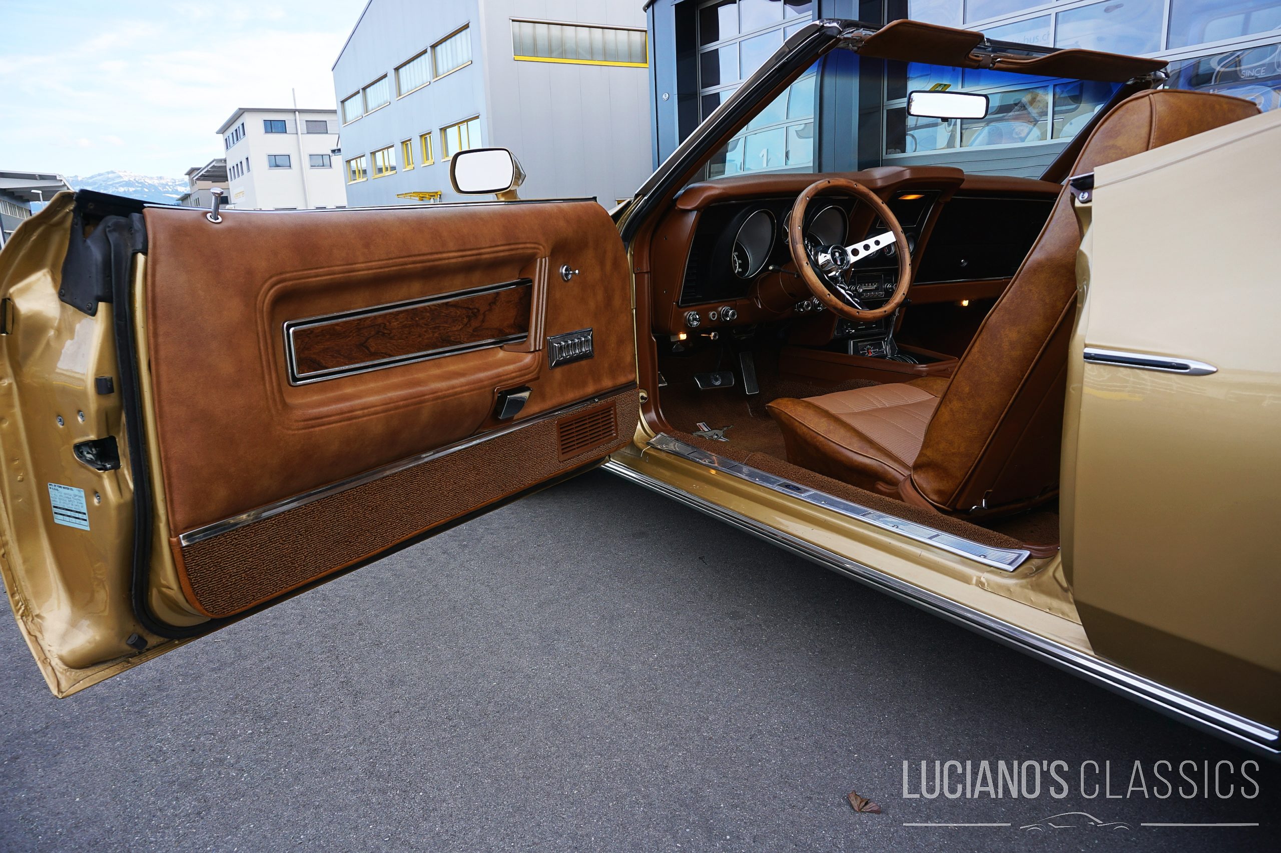 Ausgestattet wurde der Wagen ab Werk mit Servolenkung, Bremskraftverstärker, Scheibenbremsen vorne, Sperrdifferential, elektrischen Fensterhebern, elektrischem Verdeck mit Glasscheibe, Competition Fahrwerk, Magnum 500 Felgen sowie Racing Rückspiegeln in Wagenfarbe und exakt so präsentiert er sich auch heute noch. Ein Marti Deluxe Report gibt es zum Wagen dazu und auch das originale Build Sheet von 1971 liegt den Papieren bei.