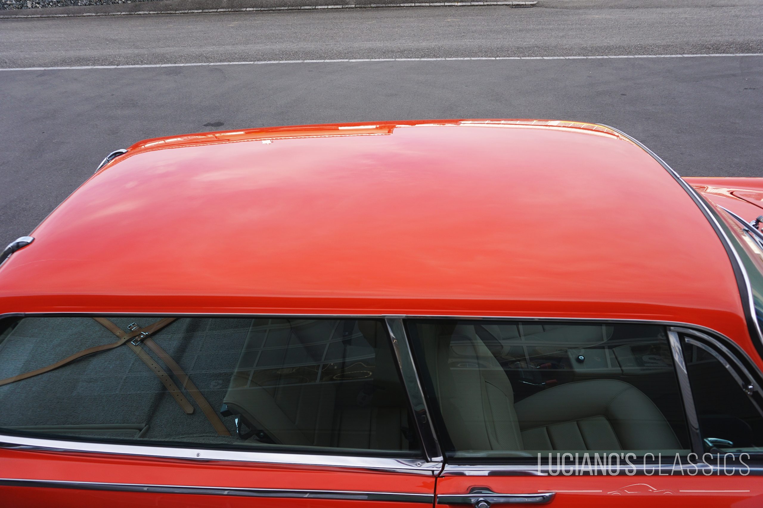 Die Originalfarbe nennt sich 113-2 Orange und steht dem Wagen richtig gut. Auch die Verglasung rundherum befindet sich in einem erstaunlich guten Zustand. Ein traumhafter Kombi, der noch etliche Jahre auf den Strassen unterwegs sein und hoffentlich auch den Kilometerzähler mehrfach über die Grenze hinaus drehen wird.