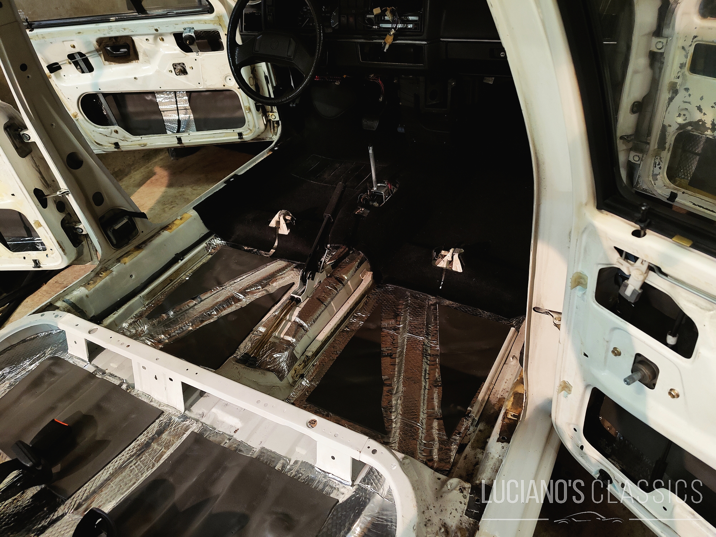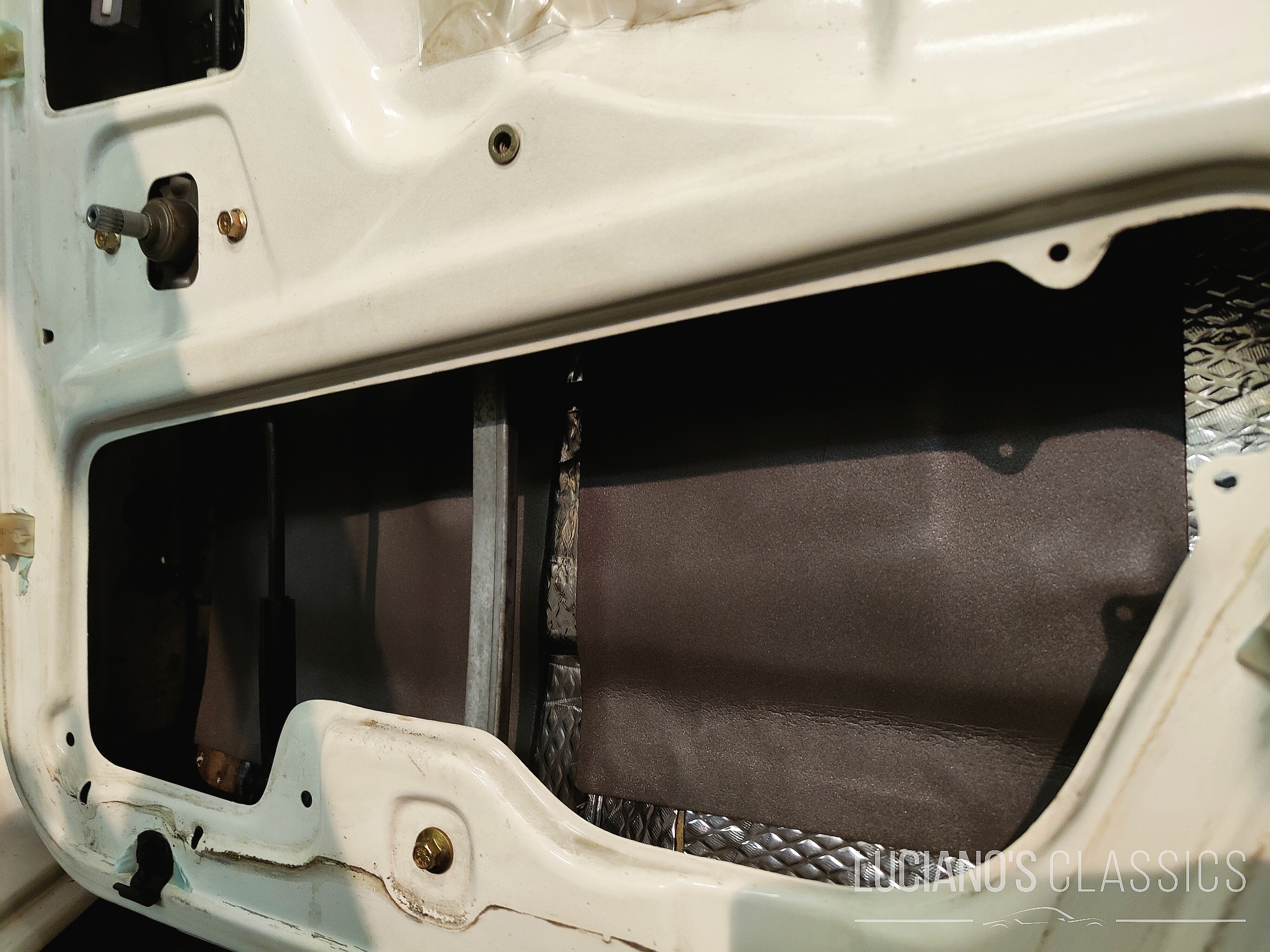 Ganz besonders am Wagen ist die hervorragende Isolation: Der komplette Innenraum wurde mit Alubutyl-Dämmmatten und teilweise zusätzlich mit Schaumgummi beklebt. Damit ist die Akustik im Wagen auch bei langen Autofahrten sehr angenehm und die nagelneue Soundanlage kann ihr Potenzial bestmöglich entfalten. Für die akustischen Medien verantwortlich zeigt sich ein passendes neues Blaupunkt-Autoradio mit DAB+, Bluetooth und Freisprecheinrichtung. Damit auch Rücken und das «Füdli» nicht zu kurz kommen, steht bei beiden vorderen Sitzen eine nachgerüstete Sitzheizung zur Verfügung.
